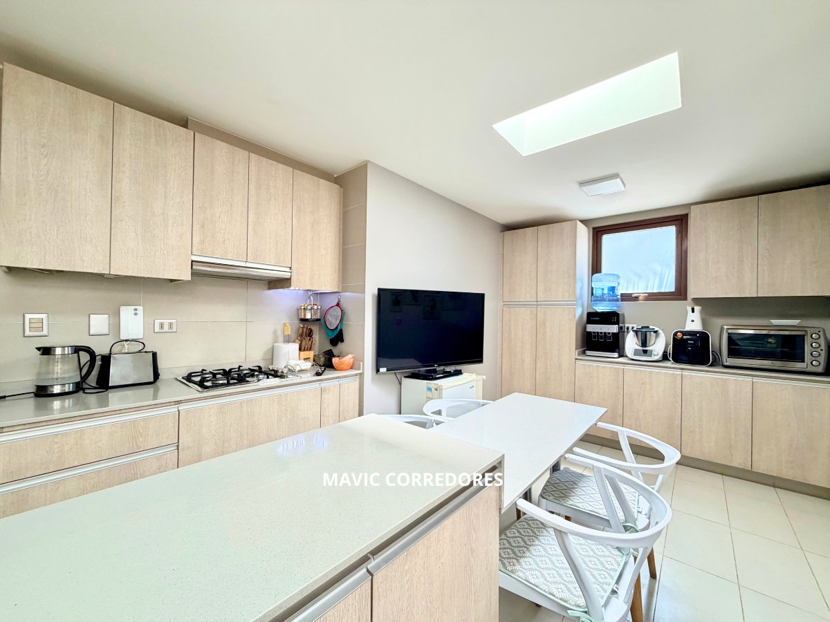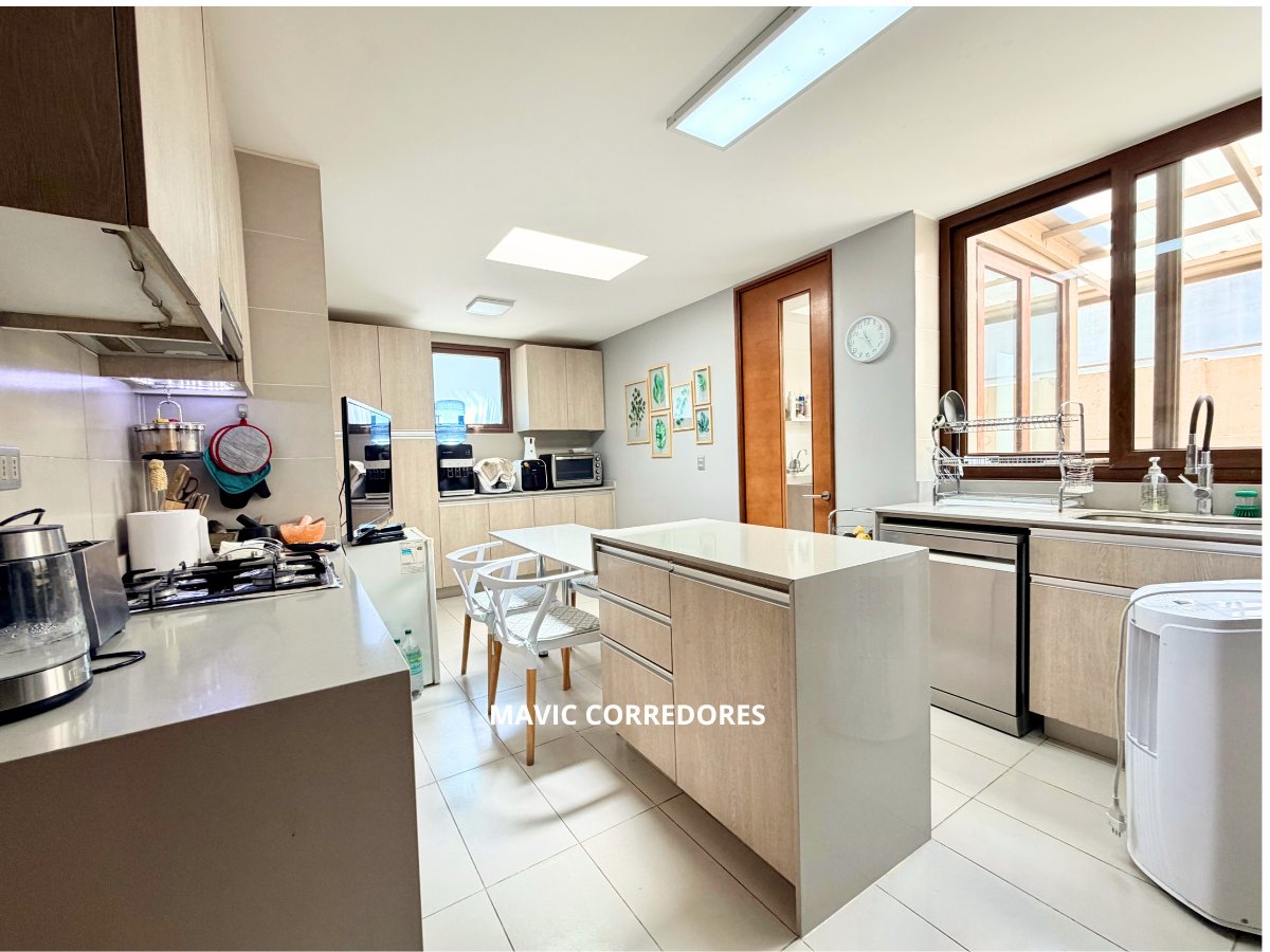 - Amplia cocina luminosa con mesón tipo isla al centro.