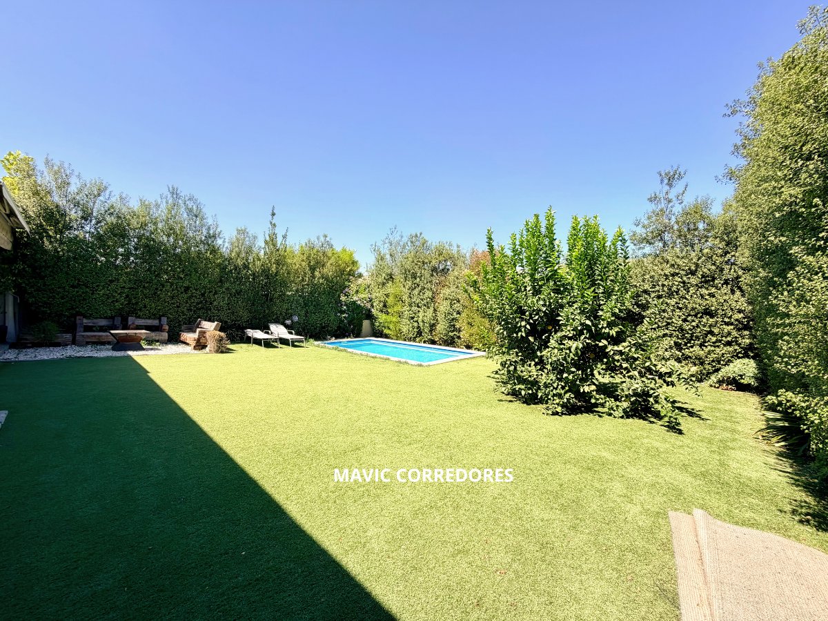 - Amplio jardín con pasto sintético y árboles con riego automático.