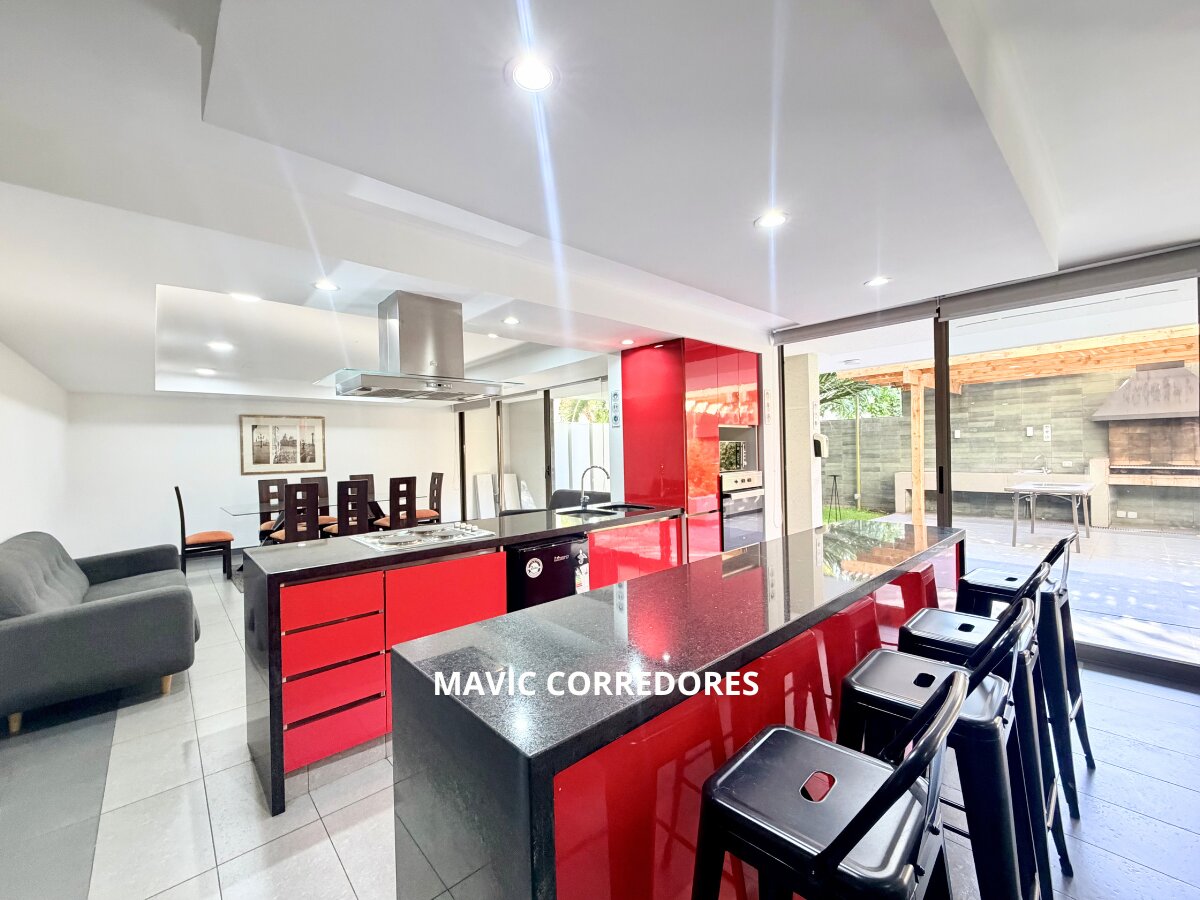 - Cocina equipada con horno, cocina encimera y campana.